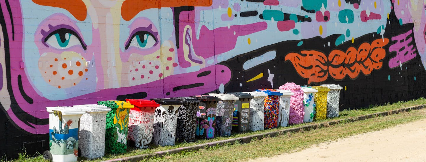 Europe’s finest artists turn average bins into masterpieces to help you sort your recyclables and keep the festival grounds looking good.