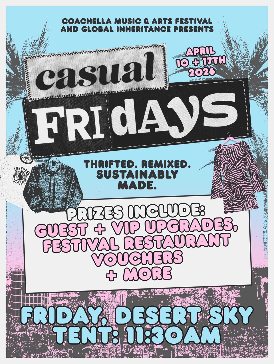 Calling all Coachella attendees — if you’re heading to the desert over the next two weekends, this is your last chance to submit your look for Casual Fridays, Global Inheritance’s sustainable fashion challenge held each Friday before festival doors open 👕👗
