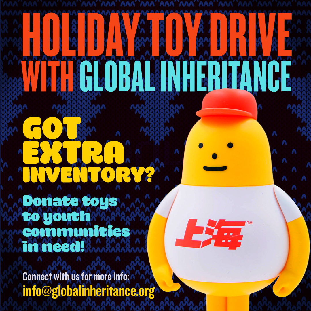 Global Inheritance is teaming up with DesignerCon, the biggest design event of the year, to give back to our community. This holiday season, we are offering the design world and toy industry the ability to donate their extra inventory or overstocked toys to communities in need. Our TRASHed: Art of Recycling bins will be on-site to collect these generous donations. By encouraging the regifting of toys and collectibles, we can help build a better future for the next generation and bring smiles to kids' faces. In addition to the Toy Drive, Global Inheritance will host an auction of specially selected pieces (e.g. limited editions/autographed) to raise funds, and offer more ways for people to be involved. Spread some holiday cheer 🥳 and join us in Anaheim!