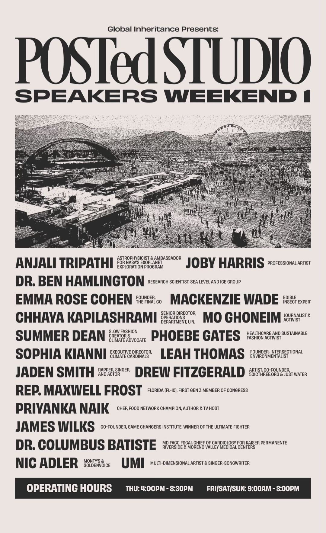 If you're attending Coachella this weekend, join us for one of these incredible talks and experience all of the Global Inheritance programming onsite.