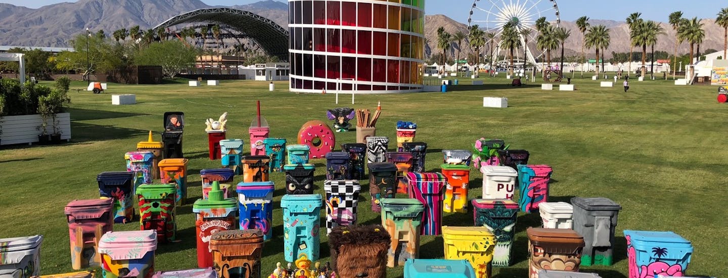 Go backTRASHed Coachella offers talented artists the opportunity to turn ordinary recycling bins into works of art to inspire people across the globe to see the beauty in recycling. Over 50 artists designed this year's unbelievable collection which graces the polo grounds both weekends! After Coachella, these recycling bins are gifted to schools in Southern California to help launch recycling programs.