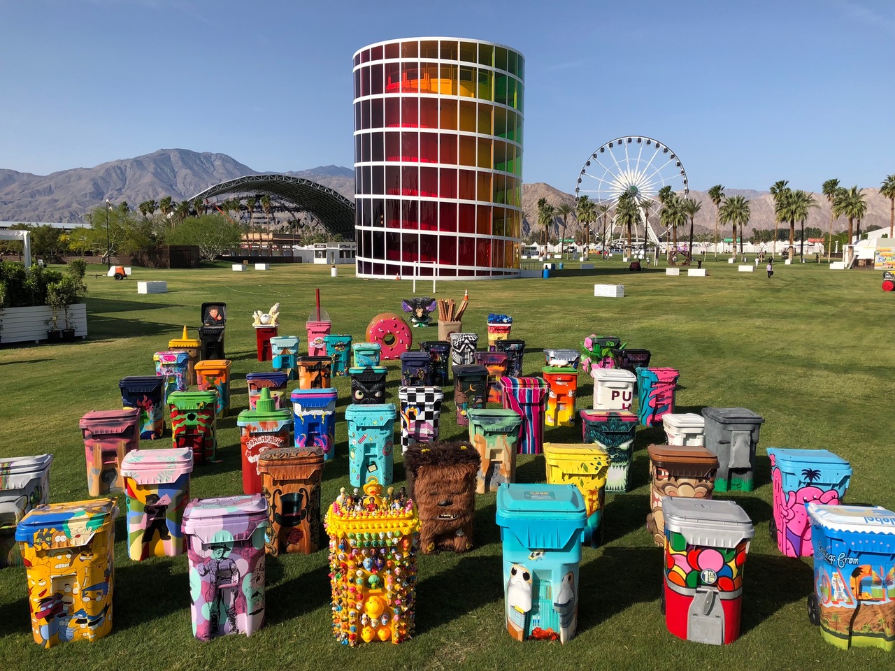 Go backTRASHed Coachella offers talented artists the opportunity to turn ordinary recycling bins into works of art to inspire people across the globe to see the beauty in recycling. Over 50 artists designed this year's unbelievable collection which graces the polo grounds both weekends! After Coachella, these recycling bins are gifted to schools in Southern California to help launch recycling programs.